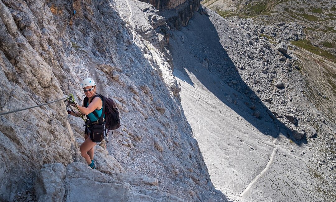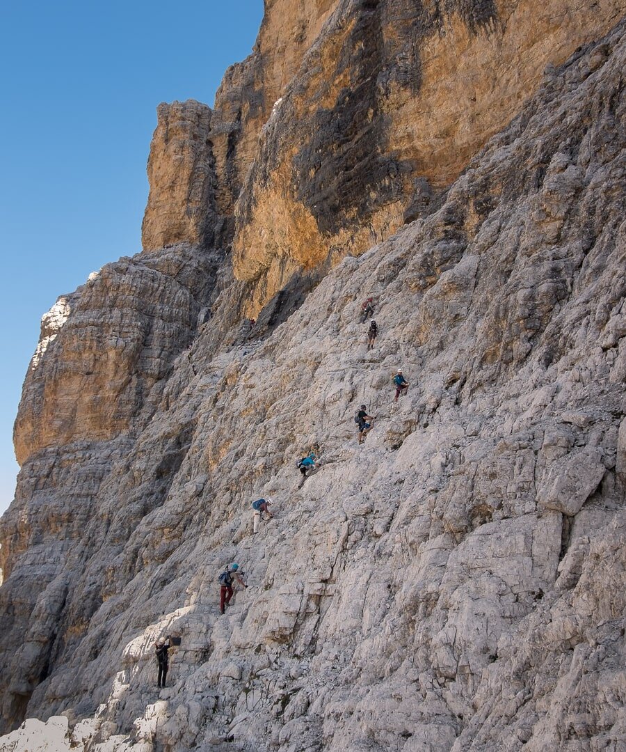 Via ferrata Giovanni Lipella to długa trasa, wymaga dobrej i stabilnej pogody przez cały dzień. Niestety ferrata jest bardzo popularna, a w weekendy wręcz oblegana. Zalecamy start bardzo wcześnie rano. Z trasy są możliwe dwa odejścia: pierwsze za tunelem, którym wracamy do schroniska Dibona; drugie za szczytem Tre Dita, którym schodzimy przed ostatnią częścią trasy do schroniska Giussani.