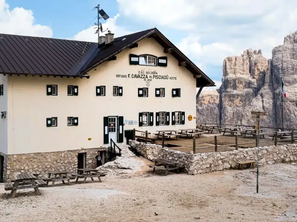 Na zdjęciu poniżej: Rifugio Franco Cavazza al Pisciadù na końcu Via ferraty Brigata Tridentina
